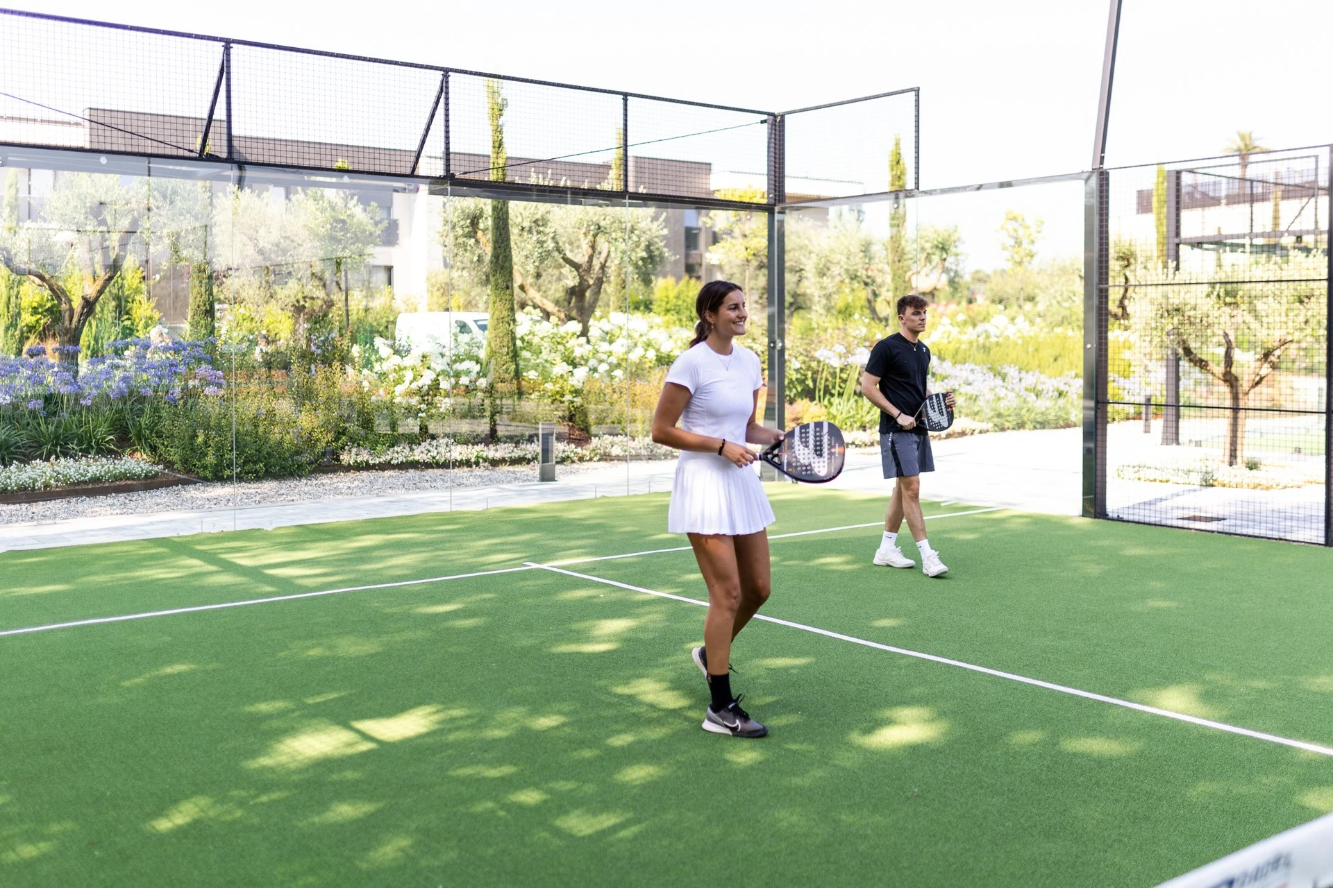 • Sportbereich mit zwei Tennisplätzen, zwei Padel-Courts, einem Pickleball-Feld und eigenem Fußballplatz